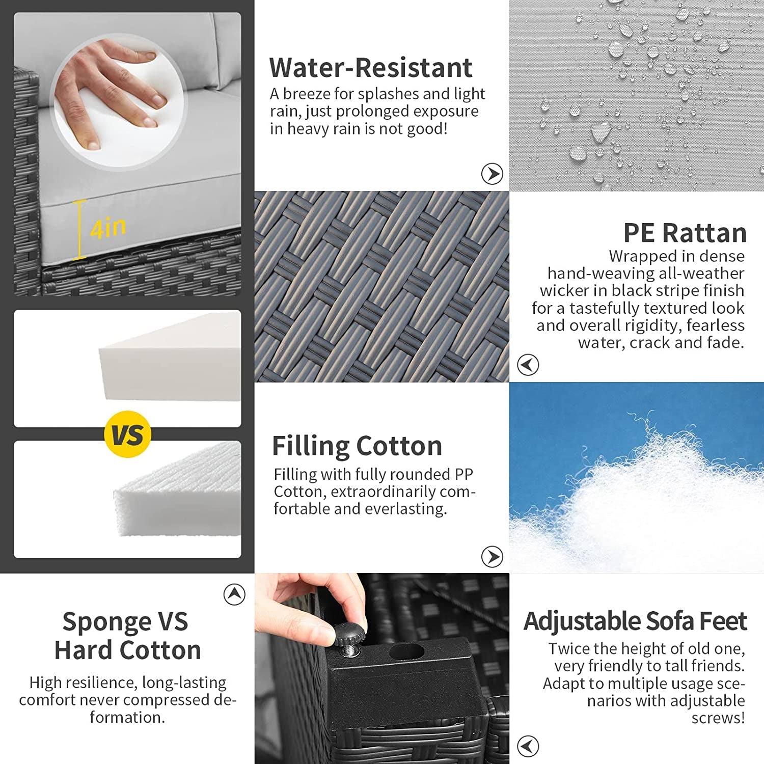 - Comfortable Seating: Thick, high-resilience sponge seat cushions (4 inches) for ultimate comfort, paired with anti-slip features for safety.