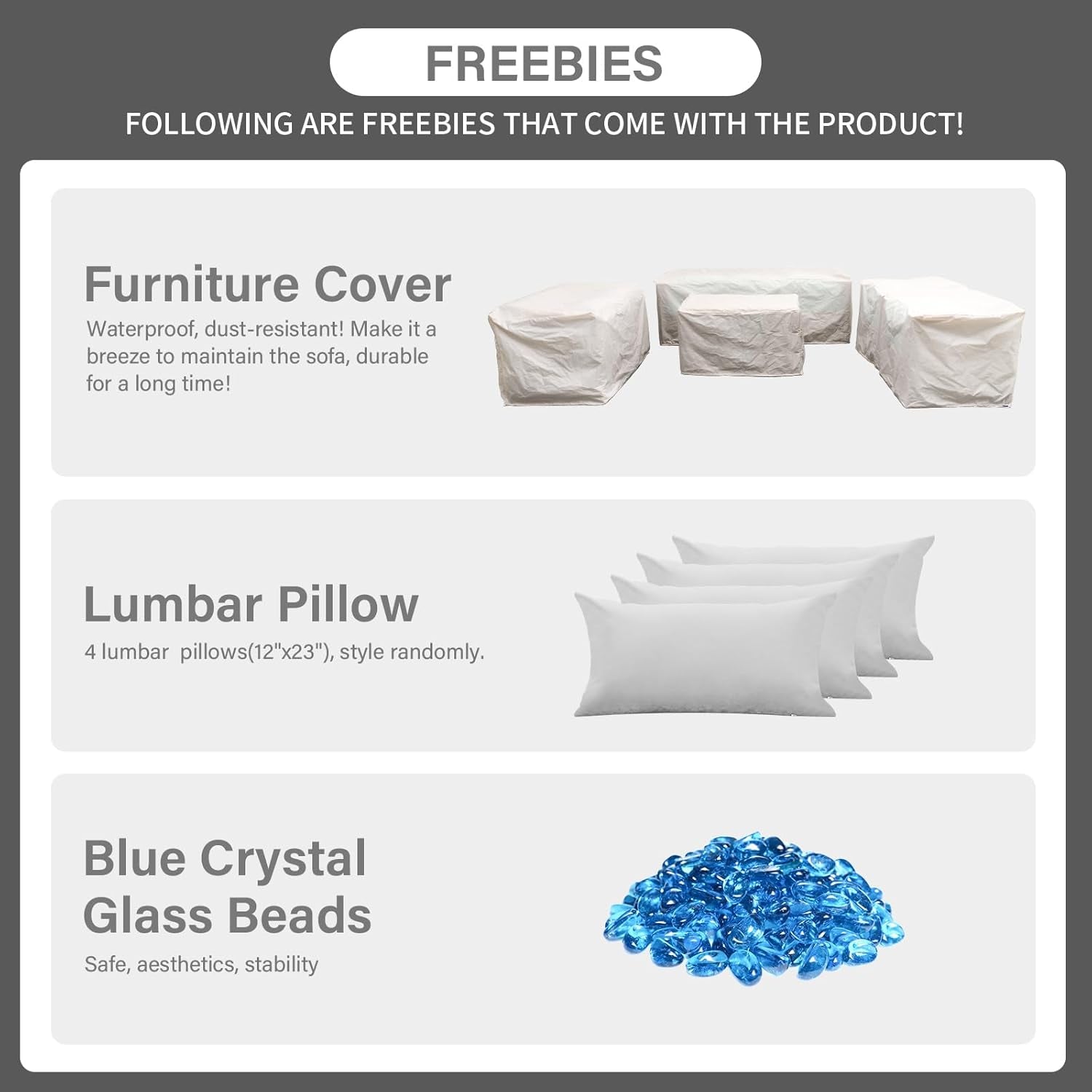 - Highly Adaptable: The set includes patio chairs, a loveseat, an outdoor sofa, and a gas fire pit, allowing for customizable arrangements.