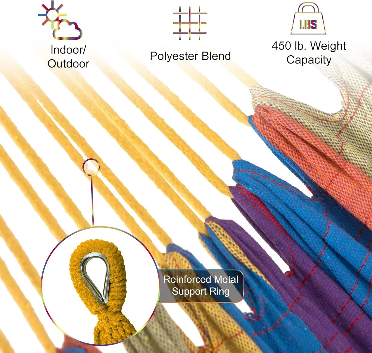 Target Keywords: double hammock, 2 person hammock, backyard hanging bed, camping hammock, outdoor relaxation furniture, durable garden hammock.