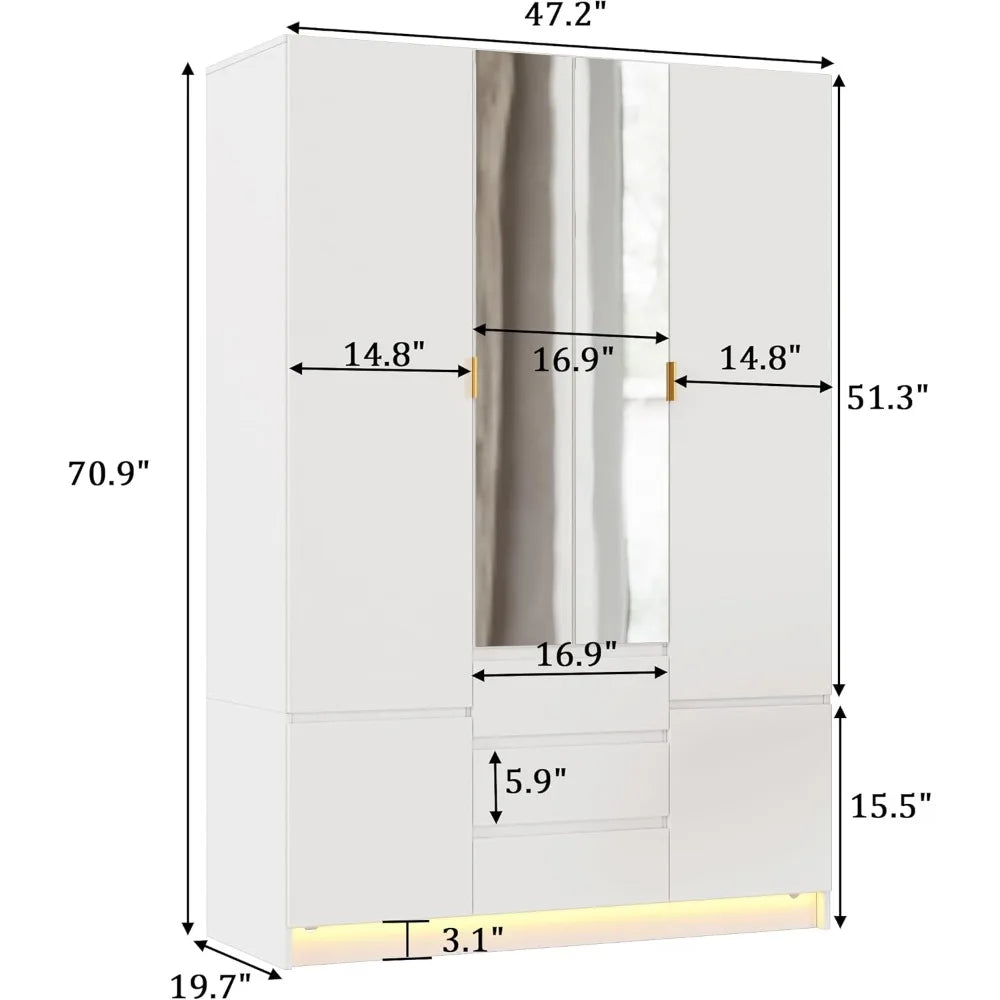Elevate your primary suite with the ultimate wardrobe solution: our Large Bedroom Armoire with LED Lighting. Designed to create a boutique-like dressing experience, this massive storage unit features integrated LED lighting that beautifully illuminates your clothing collection, making it easy to choose the perfect outfit every morning. With a versatile interior that includes dedicated hanging space, multiple shelves, and deep drawers, this armoire provides a comprehensive organization system for all your garments, accessories, and shoes. The sleek, modern white finish and sophisticated profile transform your bedroom into a luxurious retreat while keeping your entire wardrobe neatly organized and visible.